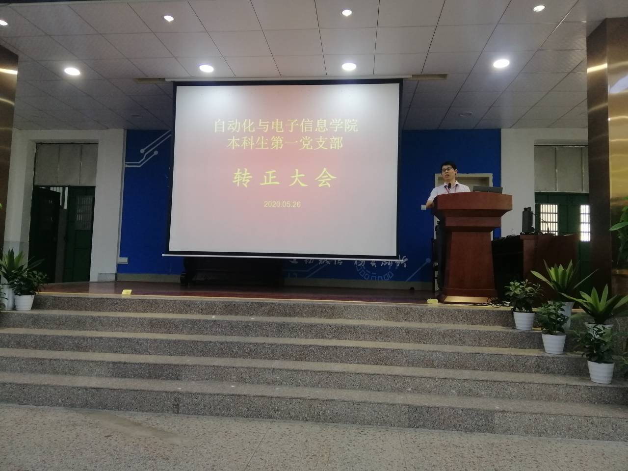 本科生第一党支部在工科楼阶梯教室召开了2020年上半年预备党员转正大会。参加本次转正大会的有学院党委孙明辉副书记、支部书记黄春晖老师以及全体学生党员,会议由李洁同学主持。