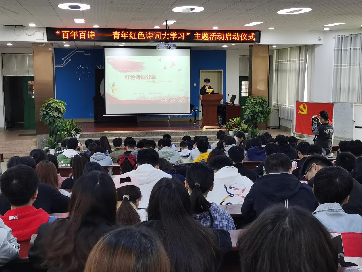 举行“百年百诗——青年红色诗词大学习”主题宣讲活动,引导青年学生学习经典红色诗词,深入推进党史学习教育,激励青年学生知史爱党、知史爱国。