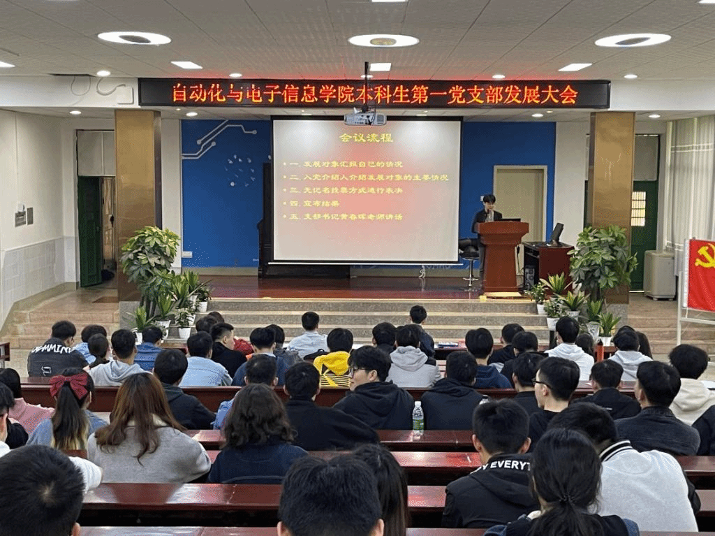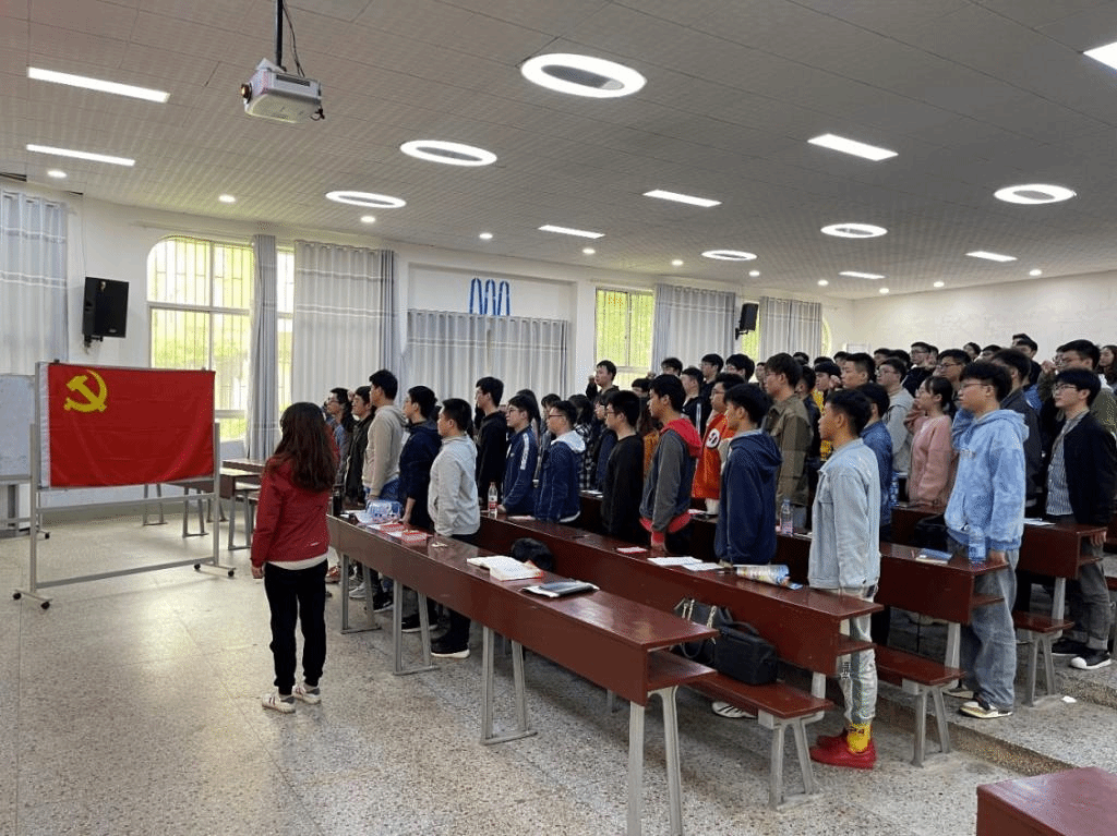 本科生第一党支部在工科楼阶梯教室举行发展大会暨入党宣誓仪式。
