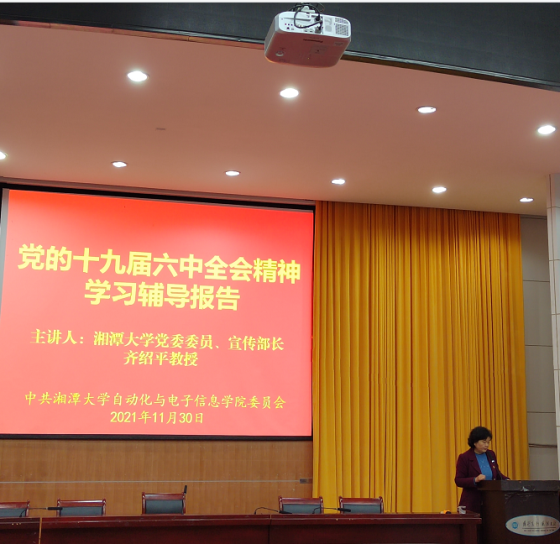 第二天下午,一支部党员同志聆听了spbo即时比分足球比分 党委精心组织的,由湘潭大学党委委员、宣传部长齐邵平教授主讲的党的十九届六中全会学习辅导报告《百年奋斗 再启新程》,齐部长从审议通过2个文件、马克思主义中国化的3次飞跃、百年历程创造的4个伟大成就、党的百年奋斗的5大历史意义及10大历史经验、党的十八大以来13方面的重要成就、全党4个必须、党中央的1个号召等全面展开,以史为鉴,开创未来。党和人民百年奋斗,书写了中华民族几千年历史上最恢宏的史诗。党的十九届六中全会主题重大、内涵丰富,是在“两个一百年”奋斗目标的历史交汇期,召开的一次具有里程碑意义的重要会议,彰显了中国共产党始终把为中国人民谋幸福、为中华民族谋复兴作为自己初心使命的政治本色。我们广大党员从党的百年奋斗重大成就中汲取动力滋养,从党的精神谱系中锤炼担当品格,要强化责任担当,抓住精神实质,以实际行动贯彻落实好十九届六中全会精神。