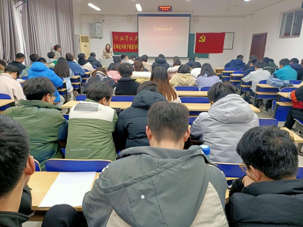 会议最后,党支部书记黄春晖老师总结发言。黄春晖老师对本次成功转正的9名党员表示衷心的祝贺,同时也对这些党员提出了希望,在思想上和行动上对自己的要求要更加严格,全心全意为人民服务,在日常生活中发挥党员的先锋模范作用。