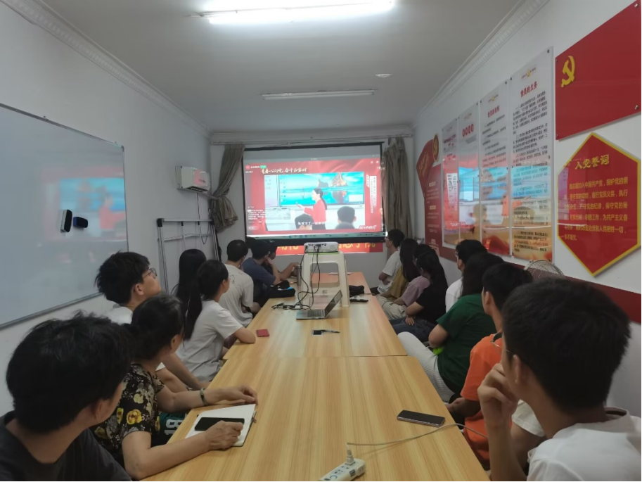 党支部组织关工委副主任彭爱莲老师及22名党员同学在金瀚林八栋308集中观看青春心向党,奋斗正当时——“奋斗青春号”主题班会、微课展播分享会。