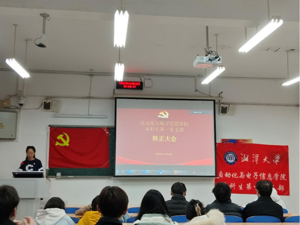 本科生第一党支部在兴教楼C103教室召开转正大会,支部全体党员参加本次会议。