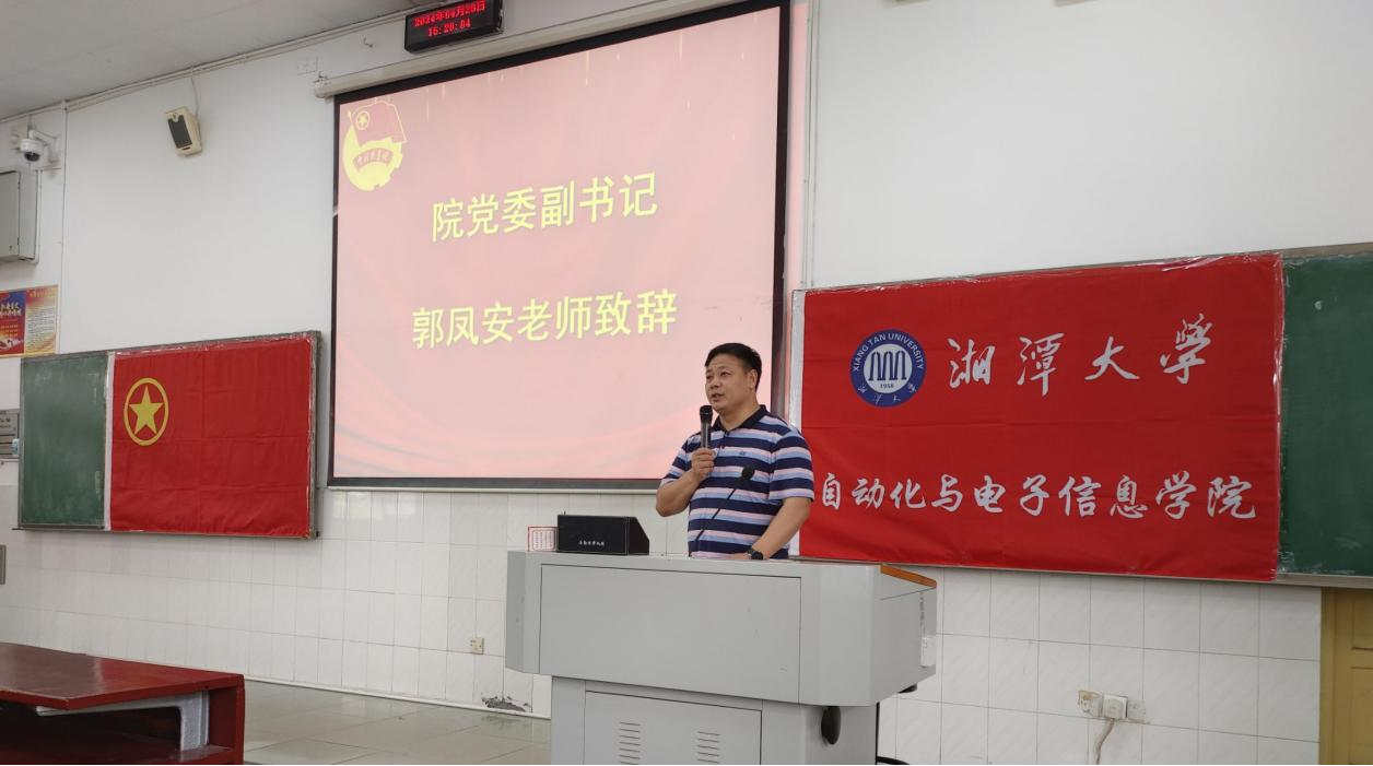 学院党委副书记郭凤安老师致辞。他对参加本次团校培训的全体学员表示欢迎,希望大家珍惜宝贵的学习机会,以端正的态度对待本次培训,深入学习掌握党团相关理论知识,积极参加实践活动,提升个人修养。