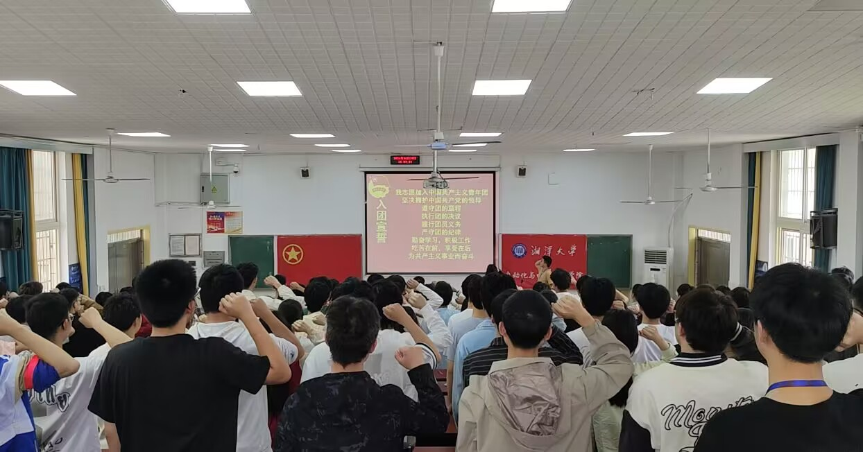 开学典礼上,全体师生起立,奏唱《中国共产主义青年团团歌》,集体进行入团宣誓。