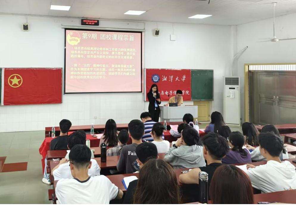 在南山六阶梯教室举行第九期团校开学典礼暨第一次团课培训,本次团课主题为“‘五四’精神传薪火,激扬青春献光彩——弘扬五四精神,创造青春辉煌”,共130余名学生参加。