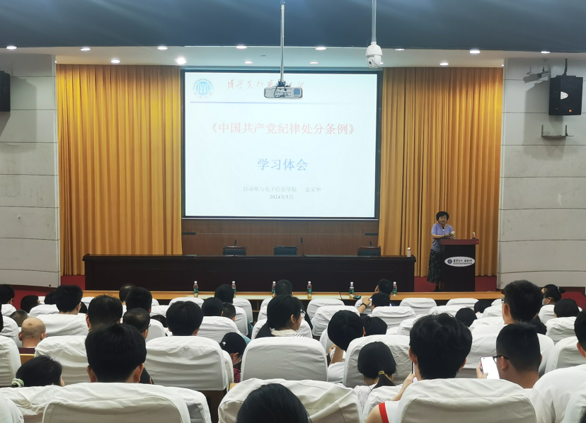 5月28日下午,spbo足球比分 党委在逸夫楼一报告厅组织开展了党纪学习暨毕业生党员离校教育。院党委书记金义华以“《中国共产党纪律处分条例》学习体会”为主题,为全院师生党员主讲了一场生动的党课。