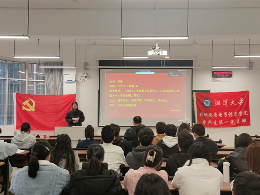 本科生第一党支部于兴教楼A102召开接受为预备党员的支部大会党员接收大会。本次大会由罗莹同志主持,支部党员同志及发展对象均到场参加。