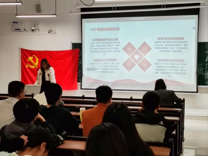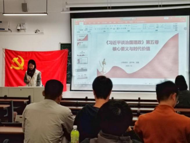 (通讯员 彭驿雅 陈家庆)为深入学习贯彻习近平新时代中国特色社会主义思想,精准把握党的创新理论的核心要义与实践价值,本科生第一党支部于 10 月 31 日专题开展 “学习《习近平谈治国理政》第五卷” 主题党日活动。活动由廖丹同志主持,刘雅同志担任主讲人,支部全体党员全程参与、深入研讨。