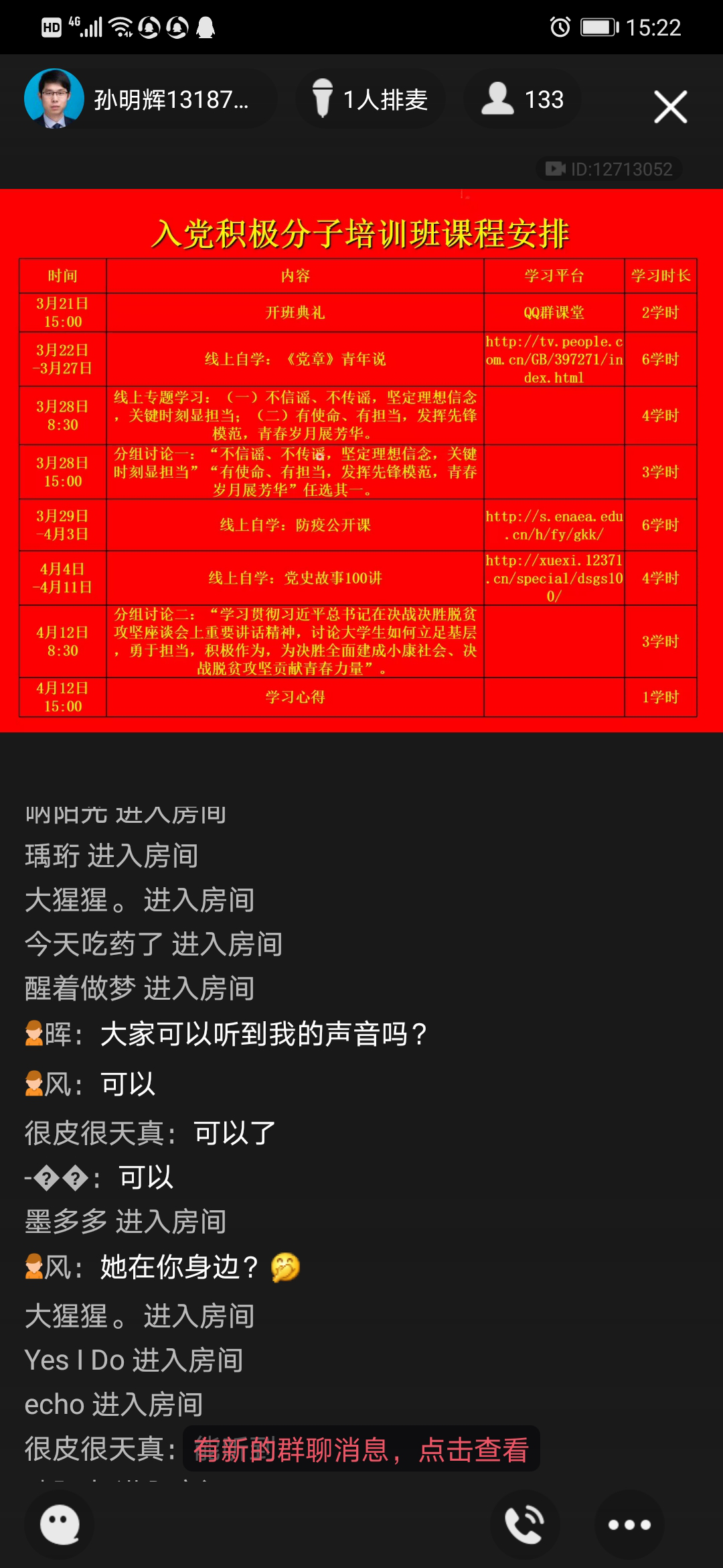 分党校入党积极分子培训开班典礼及第一次专题培训在QQ群课堂平台上顺利举行,本次开班典礼由培训班班主任黄春晖老师主持,参加开班典礼的有spbo足球比分