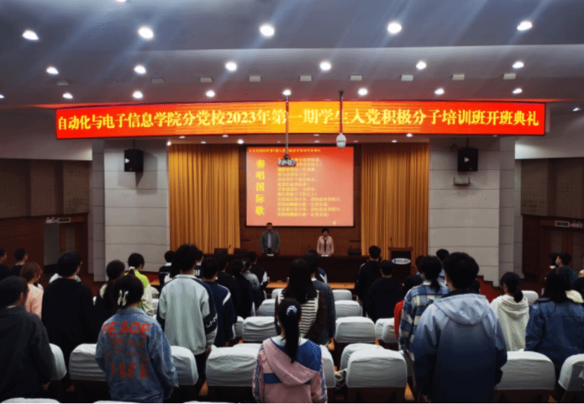 分党校2023年第一期学生入党积极分子培训班开班典礼在逸夫楼第一报告厅顺利举行。出席开班典礼的嘉宾老师有院党委书记金义华、院党委副书记郭凤安以及班主任老师刘桂珍。郭凤安主持本次开班典礼仪式。全体入党积极分子学员参加了会议。