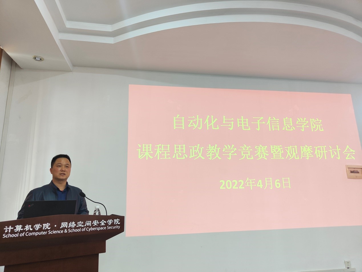 课程思政教学竞赛暨观摩研讨会在工科北楼307举行。教育部自动化专业教指委委员、湘潭大学专业认证指导中心主任段斌教授到会指导,学院党委金义华书记、郭凤安副书记、张莹委员全程参会并点评。副院长谭貌教授主持本次活动,近40名老师到会观摩学习。