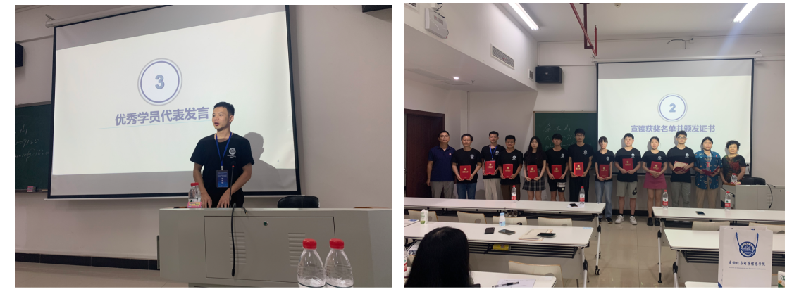 结业典礼上,来自湖南大学的王三星、西北大学的陈圣梅和湘潭大学的赵乾广三位同学作为优秀学员代表发言,分享收获并致谢。自电院党委金义华书记和周彦副院长为本届的11名优秀学员颁发荣誉证书。