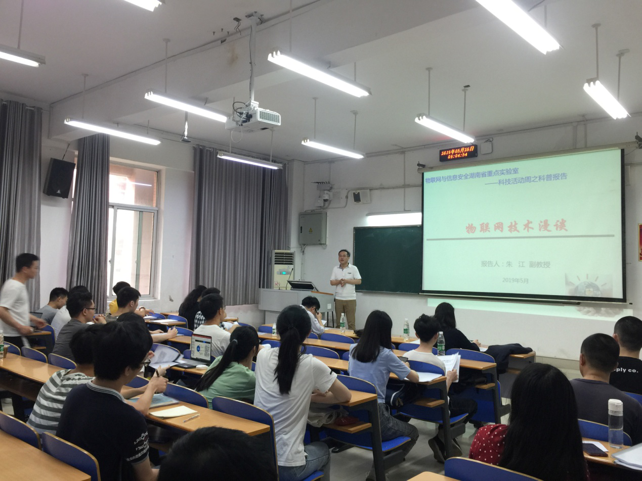 副教授朱江博士以物联网技术漫谈为主题做了一场精彩的演讲,部分本科生参与了本次活动。