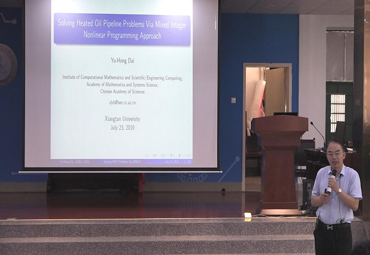 中国科学院数学与系统科学研究院研究员戴彧虹作了题为“Solving Heated Oil Pipeline Problems Via Mixed Integer Nonlinear Programming Approach”的学术报告。