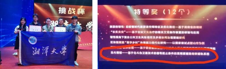 同时,湘潭大学研发的北斗定位技术在智能化铺轨机组的深化利用项目,在各类学术竞赛中充分发挥其技术以及成果转化优势,获得 2020 湘潭市创新创业大赛高校组金奖、2021 年湖南省 " 挑战杯 " 大学生课外作品大赛特等奖,并在今年湖南省 " 红枫计划 " 暨 " 麓山杯 " 创新创业大赛中,作为代表性项目受到关注与报道。