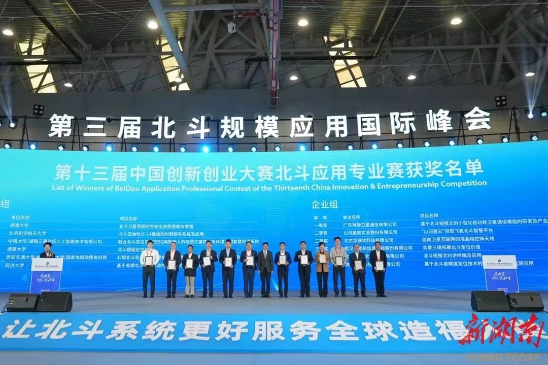(通讯员 蒋昱梅)2024年10月24日上午,第三届北斗规模应用国际峰会在株洲开幕,开幕式上举行了第十三届中国创新创业大赛北斗应用专业赛颁奖仪式,湘潭大学以第一的成绩获得团队组一等奖。