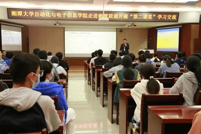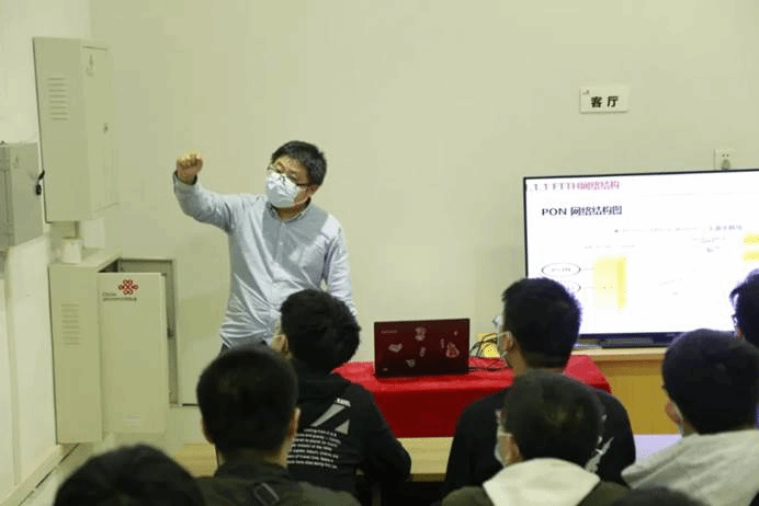 参观结束后,湘潭联通数科公司陈名开经理为大家开展5G应用讲座。首先,陈名开经理为同学们讲述5G架构及应用的情况,结合联通的实际工作项目介绍了目前5G+最前沿的技术,希望同学们在校时要打好基础,重视专业知识的学习,在现今竞争激烈的环境中能够脱颖而出