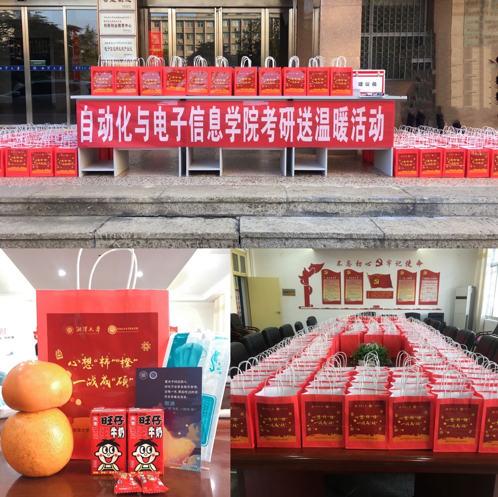 距离硕士研究生入学考试只剩下两天,为了缓解考研学生的焦虑心情,让他们真切感受到来自身边师生朋友的关心和关爱,以积极的心态认真备考和应考。学院特意为2018级每一位考研学子精心准备了一份包含了柿子、橙子、旺仔牛奶、旺仔糖果、祝福卡片、一次性口罩等的暖心礼物袋,预祝学生心想事成,一战成“硕”。学院院长姚志强、党委书记金义华、党委副书记郭凤安等领导在工科楼门口现场为大家赠送考研暖心礼物,希望大家保持良好心态,认真备战,成功应战,同时衷心祝福大家考研顺利,成功上岸。