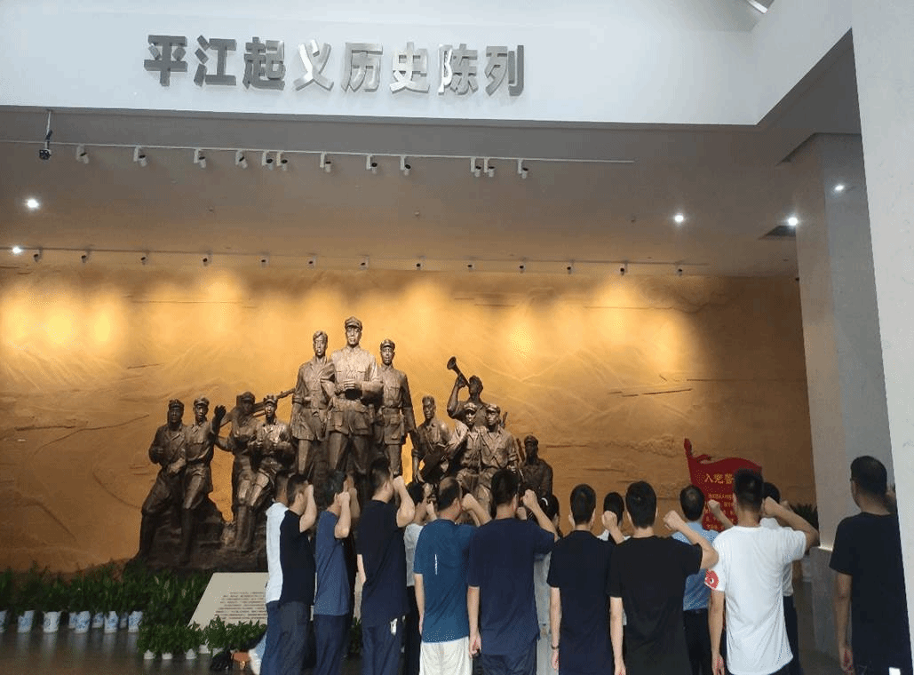 面对伟人的雕塑,全体党员肃然起敬,紧握右手宣誓,向革命先烈致以最崇高的敬意。平江起义的将士们为了人民的幸福奋不顾身,不惜奉献出宝贵的生命。他们的英雄事迹和革命精神是我们国家与民族的宝贵财富!