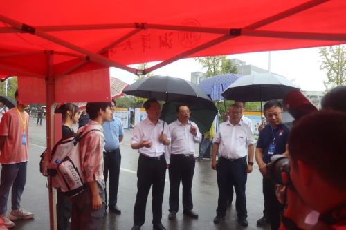 的迎新点检查指导迎新工作,慰问迎新工作人员,与新生和家长亲切交流。