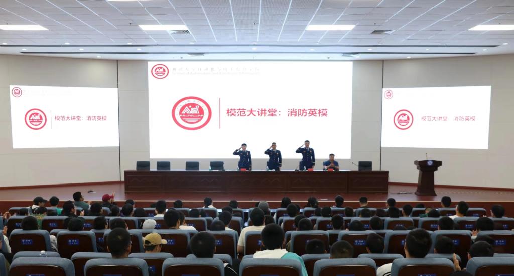 (通讯员 陈恬 蒋昱梅 易佳 喻阳)11月5日,spbo足球比分 模范大讲堂开讲,本期联合湘潭市消防救援支队。“韶山卫士” 韶山市消防救援大队,“湖南省抗击新冠肺炎疫情先进个人”彭诗凯,“全国消防救援队伍优秀女干部”彭娟为现场600余名本科生讲述消防救援事迹。