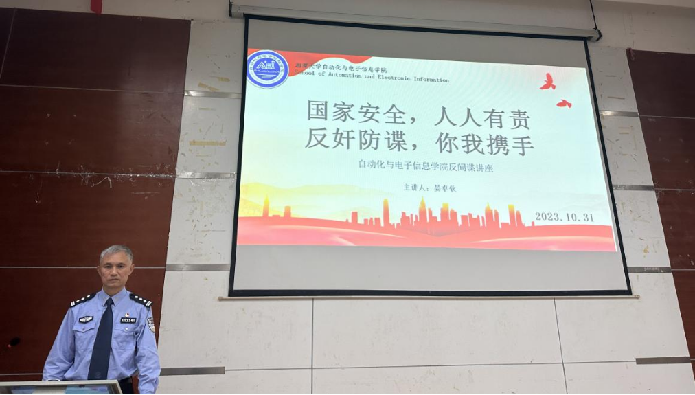 (通讯员:程琳宇 谯西镇)2023年11月1日是《中华人民共和国反间谍法》颁布实施九周年纪念日。为进一步提高师生反间谍安全防范意识,增强维护国家安全的自觉性,10月31日下午,spbo足球比分 开展了《反间谍法》宣讲活动。“全国先进工作者”“全国特级优秀人民警察”荣誉称号获得者晏卓钦警官作为主讲嘉宾,分享了他近40年亲身维护国家安全的经历,为学院师生带来了一场生动的反间谍教育课。