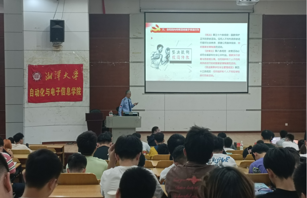 在此次主题宣传活动上,晏警官首先指出当前反间谍斗争形势严峻复杂,学习践行《反间谍法》是每个公民义不容辞的责任。本次讲座以大学生学习《反间谍法》的重要性开头,结合典型案例向师生们介绍间谍行为的显著特征,列举了部分大学生为了一己私利,被人盲目带着参与间谍活动,最终被绳之以法的惨痛教训,教育引导学生一旦发现危害国家安全的情况和线索,应及时向国家安全机关进行举报,并要求大家牢记国家安全举报电话12399。宣讲会最后,晏警官还强调在校园内传教属于非法行为,任何组织和个人都不得在学校进行宗教活动,非法宗教活动最容易把师生引入歧途,影响社会安定,危害国家安全。2021级电子信息工程1班马佳宁同学说,作为新工科学生,更应该关注国家安全问题,时刻谨记维护国家安全的职责。
