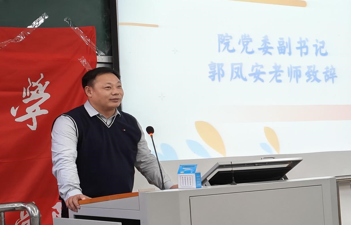 最后,学院党委副书记郭凤安老师上台致辞,他强调了体育锻炼对个人身体健康的重要性,表达了对同学们的殷切希望,并祝愿全体运动员在比赛中取得优异成绩。
