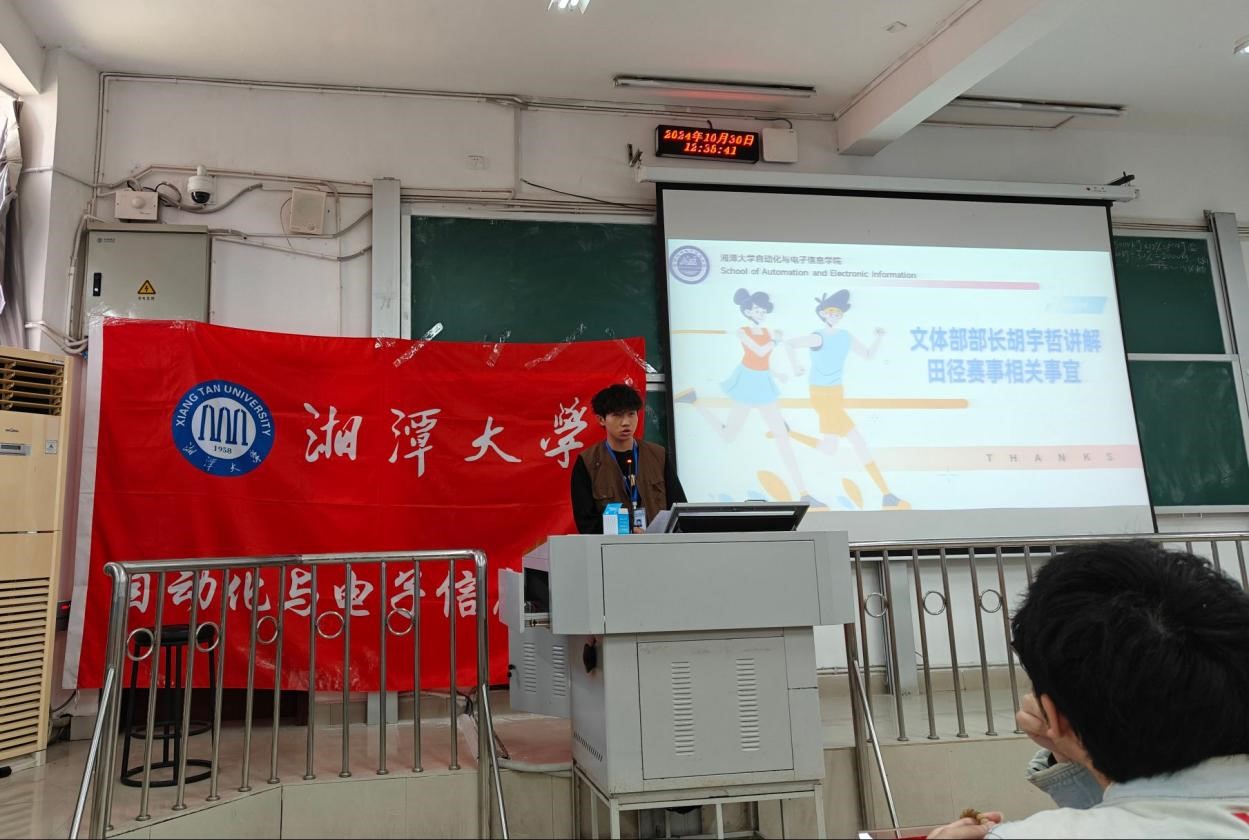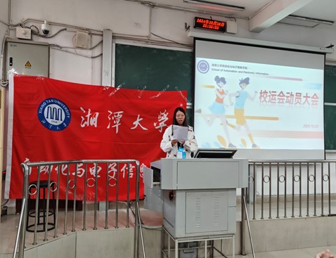 于10月30日于兴湘教学楼C109召开校运会动员大会。出席本次动员大会的嘉宾有学院党委副书记郭凤安老师、学工办黄春晖老师、学工办彭驿雅老师、团委第一副书记马锐、团委第二副书记陈昱、轮值主席范珉旻、轮值主席贾峻祺。