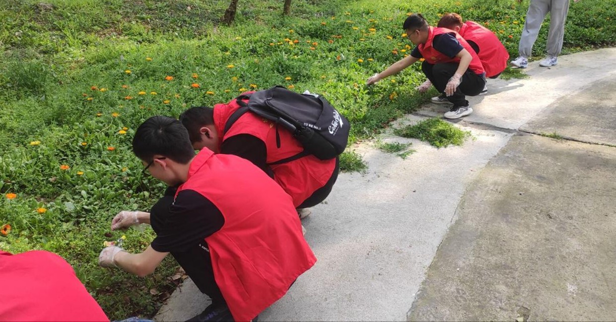 22级人工智能三班的志愿者们于和平公园开展了一场志愿除草活动。