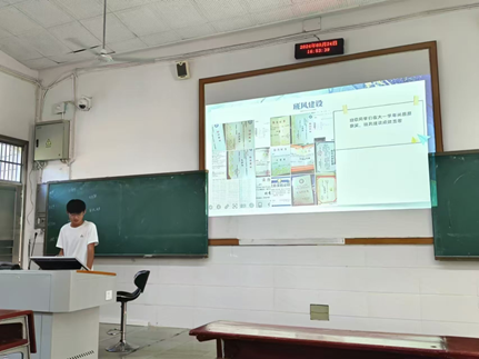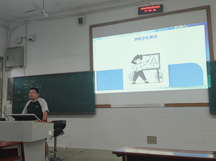 随后,班主任助理杨四海同学结合自己的保研经历,为班级同学分享了宝贵的大学经验。他从保研、考研、就业等多个角度为同学们提供了许多实用的建议和指导,鼓励大家珍惜大学时光,明确目标,尽早规划。班主任助理张中豪和张双同学也分别表达了对同学们的鼓励和祝愿。