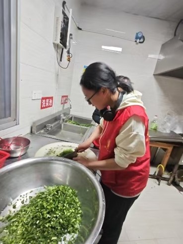 在包饺子环节,厨房里热闹非凡,同学们围坐在一起,共同体验着传统美食的制作过程。揉面、擀皮、调馅、包饺子,每一步都充满了乐趣与温馨。大家一边忙碌着手中的活计,一边欢声笑语地交谈着,分享着彼此的生活点滴。不一会儿,一个个形状各异的饺子便摆满了托盘,有像月牙的,有像元宝的,充满了生活的气息。整个场面洋溢着浓浓的“亲情”和家的温暖,让老人们感受到了来自社会的关爱与温暖。