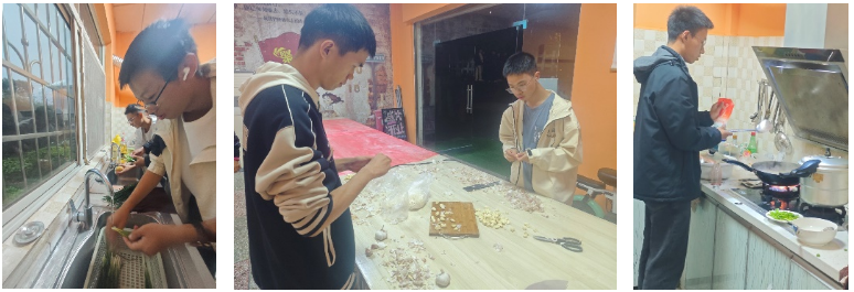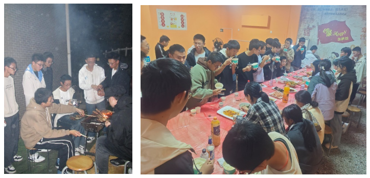 随着夕阳西下,同学们纷纷主动请缨准备晚饭,展示自己“中华小当家”般的厨艺。各种香辛料在同学们熟练的刀工下舞动起来,调味料与锅中翻炒的食材迸发出扑鼻的香气,令人垂涎欲滴。来自五湖四海的同学带来了各具风味的菜品,不同的饮食风格在和睦的宴席中交融,展现了团结一心的集体精神。