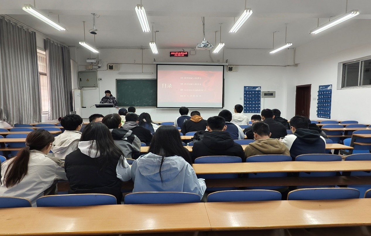 活动伊始,团支书以饱满的热情向同学们详细介绍了新中国成立的艰辛历程和当时的历史背景。通过生动的讲解和珍贵的史料展示,同学们仿佛穿越时空,亲身感受到了那段峥嵘岁月中的不易与坚持。