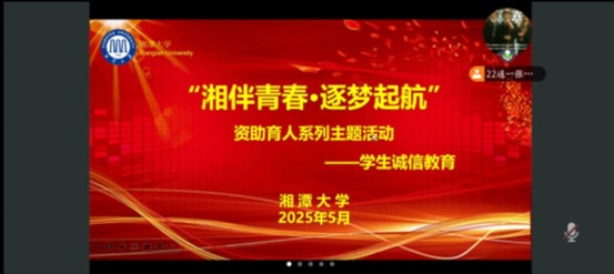 (通讯员:刘宇轩 指导老师:吴亚联)5月5日,22级通信工程一班以线上会议的形式开展了“湘伴青春 逐梦起航——资助育人系列主题学生诚信教育”专题活动,聚焦提升学生诚信意识,宣传生源地助学贷款政策。活动由班长张娴之主持。