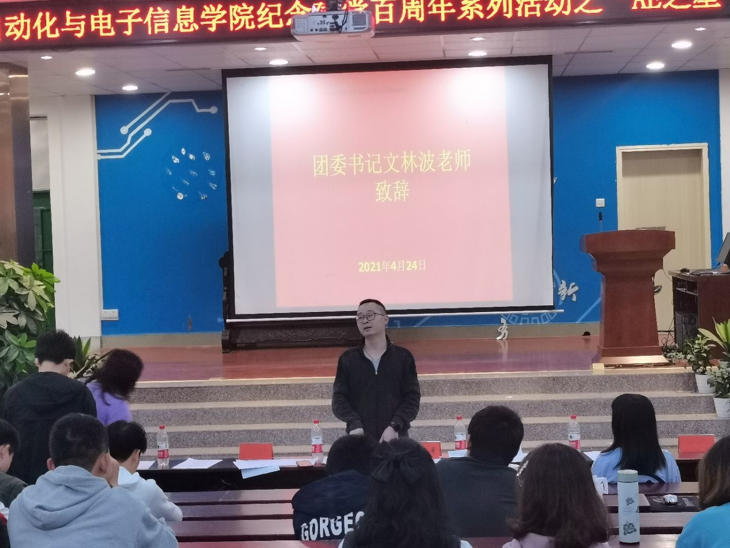 决赛正式开始,十位选手李建康,窦一龙,龚漾,方伟昊,林煌彬,翟文爽,黄麒霖,方英俊,项佳雨和陈世豪同学分别进行精彩的演讲。各位选手详细而生动地介绍自己在大学期间的经历与成就,讲述自己探索未知的学习历程。十名参赛选手演讲结束,团委书记文林波老师对此次活动进行致辞,围绕学院学风建设的主题和彰显青年风貌的目的对活动给予肯定,对各位参赛选手给予高度的赞扬和评价,同时希望更多同学能够展示自己。