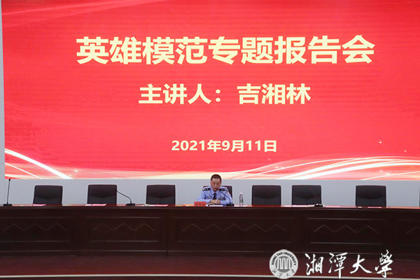 在研究生学术报告厅邀请英雄模范吉湘林为学院2021级本科生、硕士研究生作专题报告。