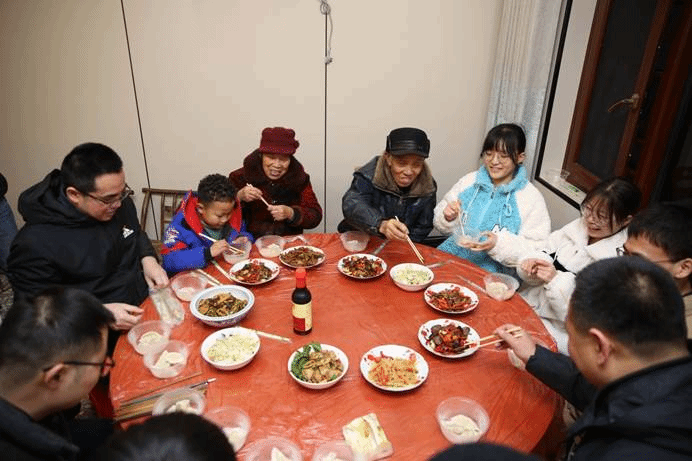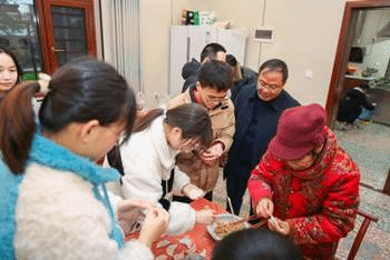 下午三点多,湘大师生们便来到了汤洪波父母亲的家中,学生代表向两位老人拜年,并为他们送上了鲜花。之后,同学们就忙开了,大家帮着打扫卫生,挂上大红灯笼,贴上春联。忙完,同学们便和汤奶奶围在桌前,一边包饺子,一边听她讲着汤洪波成长的故事。在这阖家团圆的日子里,大家一起开心地陪着二老吃着热乎的饺子、聊着天,交流着各地过小年的风俗习惯,屋子里充满了过年的喜庆氛围。
