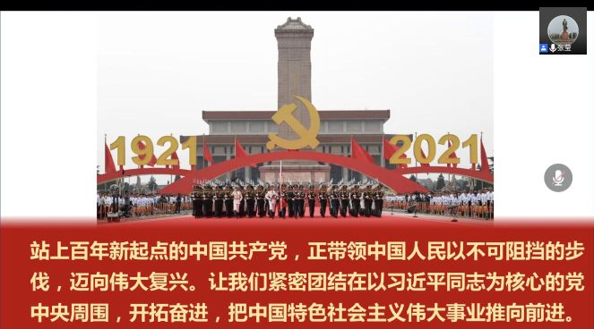 张莹老师从“中国共产党人精神谱系”引入,主要从奋斗百年、建党精神、中国共产党的精神谱系、红船精神、井冈山精神、长征精神、延安精神七个方面讲述了主题内容。张老师首先带领大家回顾党的百年奋斗历程,介绍了党的伟大成就。然后通过图文讲述的方式向全体学员深刻诠释了中国共产党人的精神谱系,鼓励当代青年向老一辈革命家和共产党人学习,坚定理想信念,艰苦奋斗,敢于奉献,勇于开拓创新。在提到共产党人的初心使命时,张老师表示:“入党誓词并不多,记住并不难,难的是终身坚守。”