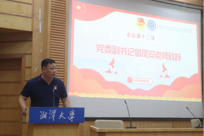 最后,党委副书记郭凤安老师发表讲话,表达了对团委·学生会的充分肯定和殷切希望。郭书记表示,新一届团委·学生会是承前启后的新力量,要团结一心,齐心协力;紧跟时代步伐,发扬自电精神;高举服务旗帜,发挥纽带作用;把准时代脉搏,开创团委工作新篇章,并希望各位学子做一个工作有本领,生活有激情,待人有风度的新青年。