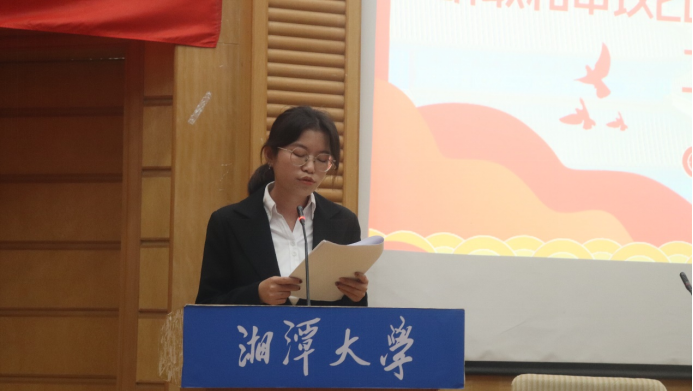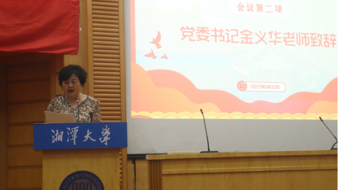 在奏唱国歌之后,党委书记金义华老师为大会致辞。她表达了对团委·学生会的充分认可、殷切期待和诸多嘱托,也提出几点希望:一是希望各位青年不忘初心,牢记使命;二是希望各位青年不断学习,与时俱进;三是希望各位青年脚踏实地,奋勇争先。她回顾了初到湘潭大学的情景,既感慨时间飞逝,也感动于一代代团委·学生会同学的接力传承,希望新一届团委·学生会继续立足需求、守正创新,为spbo足球比分