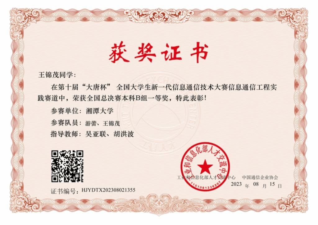 承担了大唐杯赛校内参赛的组织和培训工作,配合大赛组织方完成了宣讲、报名、省级赛训练、省赛组织、全国总决赛训练等工作。全校多个学院的学生共32支队伍报名参赛,其中3支队伍获得省级一等奖,5支队伍获得省级二等奖,5支队伍获得省级三等奖,2支队伍进入实践赛道全国总决赛。