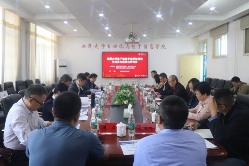 联合承办的2023年湘潭大学电子信息专业学位研究生培养方案优化研讨会在工科楼201会议室召开。会议邀请了国防科技大学研究生院院长沈林成教授、华北电力大学前副校长王增平教授、中国航天科技集团五院五一三所总指挥张玉兔研究员、中南大学自动化学院院长王雅琳教授、中南大学电子信息学院院长邓晓衡教授、中南大学计算机学院副院长黄家玮教授等校外专家。湘潭大学校长湖南省政协副主席潘碧灵同志出席本次会议,会议由湘潭大学副校长喻祖国主持。