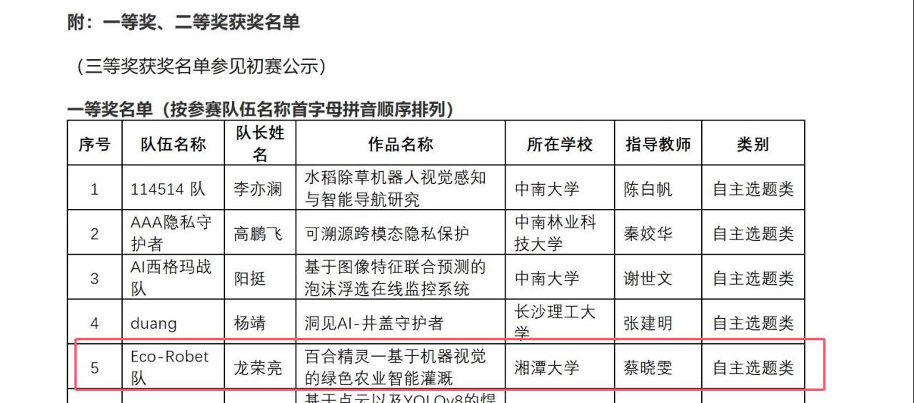 “智能可信导航与定位”省重点实验室学生不负众望,在这两大赛事中均有亮眼发挥。在研究生电子设计竞赛中,包揽湘大全部奖项,其中蒋伟杰、郭凤姣、张英杰团队获省级二等奖,杨瑾瑾、冀鸿俊、李品醇团队与王小康、卢佳佳、周毅团队均获省级三等奖。在第五届研究生人工智能创新大赛中,龙荣亮、邹国富、郭凤姣、王小康共同研发的“百合精灵—基于机器视觉的绿色农业智能灌溉”项目脱颖而出,以其独特设计理念与技术创新赢得了评委的一致好评,一举夺得省一等奖。这一成绩不仅是对他们个人才华与努力的认可,更是对spbo即时比分足球比分