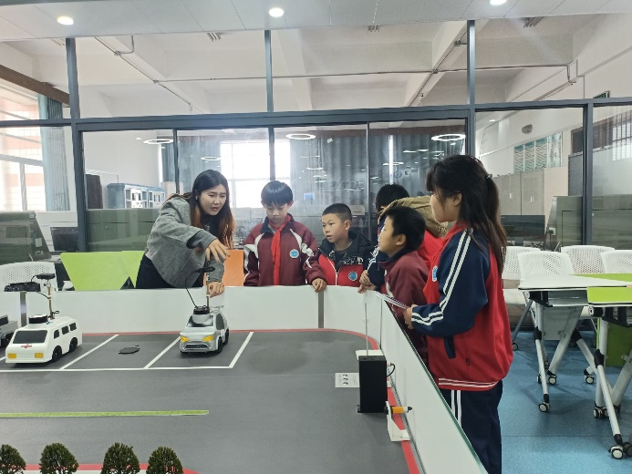 互动环节尤为引人入胜,AI实验箱让学生们直观地了解了机械臂如何通过视觉装置完成物品分类;AI数字人则凭借其逼真的形象和自然的互动方式,吸引了同学们的目光,大家纷纷与其进行对话和互动;无人驾驶小车灵活地行驶在预设轨道上,精准的导航、避障能力和红绿灯识别功能让小学生们大开眼界;复合机器人则展示了其多功能的设计,完成了一系列复杂的任务动作,赢得了同学们的热烈掌声。