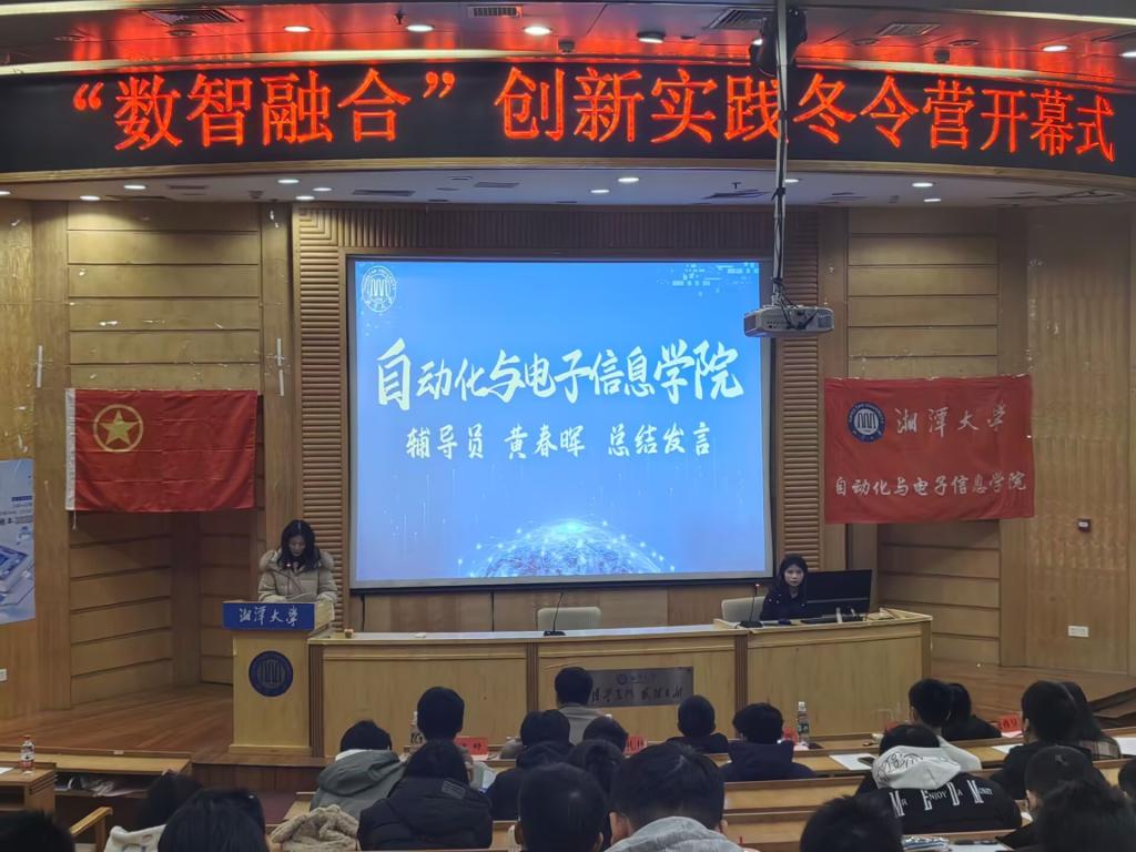 2025年1月10日,2025“数智融合”创新实践冬令营开营仪式在图书馆报告厅举行。湘潭大学电工电子创新实验室负责人向礼丹,全体辅导员出席,全体营员参加。此次开幕仪式由学院辅导员熊峰主持。