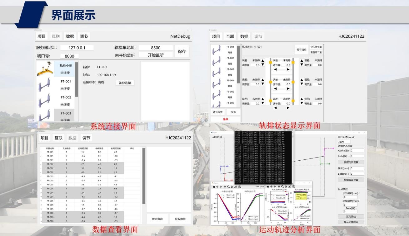 该成果基于惯性测量技术+物联网技术+智能控制算法开发的高铁轨道基底AIoT全自动精调系统,实现对轨排的“感知-决策-执行”全闭环自动化与智能化控制,系统由轨检小车、智能动力轨排、精调软件系统三大部分组成。