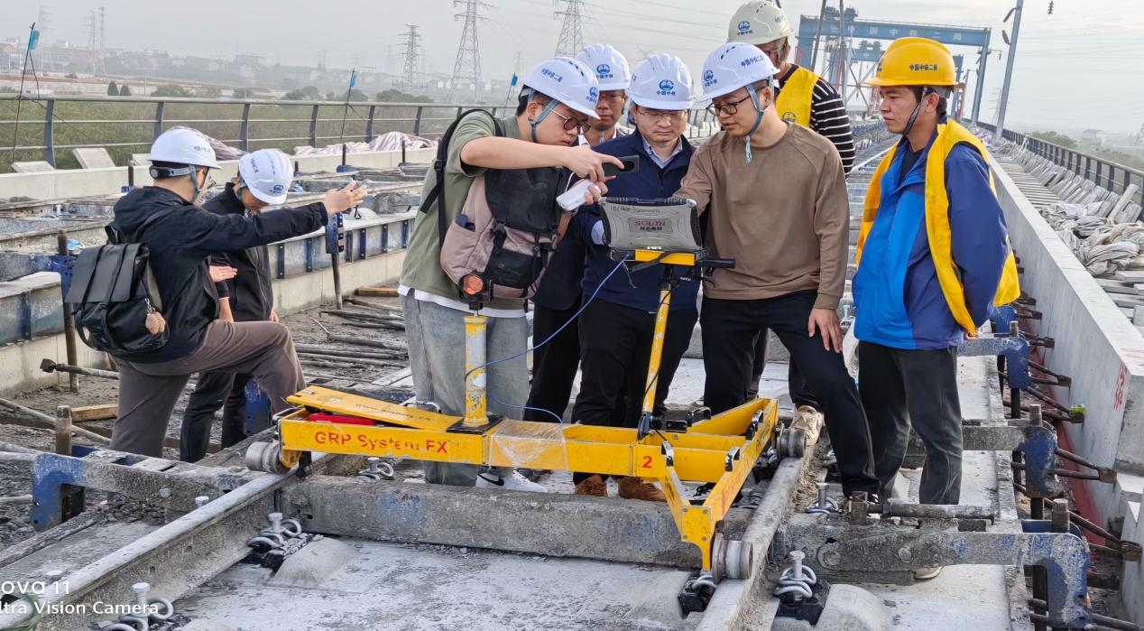 该成果突破性解决了高铁基座施工的高精度要求,通过全自动化检测与调整,极大提升了无砟轨道轨排架施工效率。系统最高可实现±0.3mm级高精度调节,将120米轨排精调时间从6小时压缩至1小时,作业效率提升5倍,人员投入减少50%以上,成功打破了无砟轨道精调的施工效率和精度瓶颈。在优化铺轨施工流程的基础上,降低了人工依赖性,保障了施工质量的一致性,为铁路轨道建设行业数智化转型提供关键技术支撑。