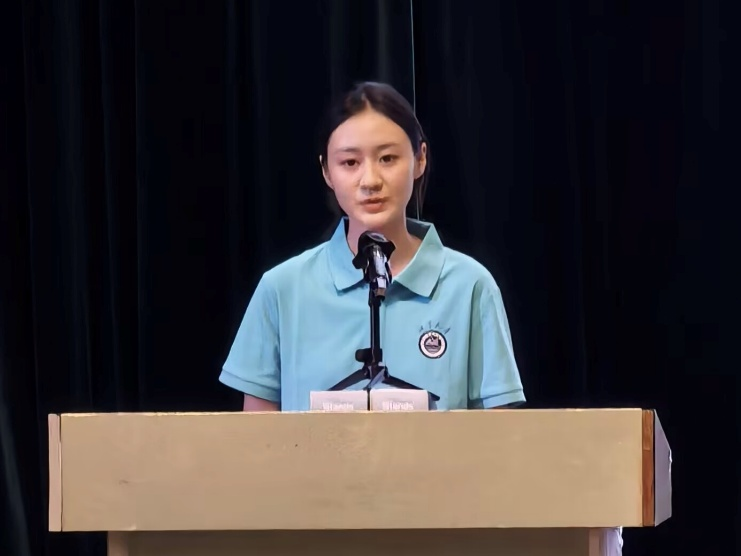 2025级电子信息工程4班刘紫颜同学作为新生代表发言,她表达了对大学生活的憧憬与期待,并表示将以饱满的热情投入到学习中,不负师长与家人的期望。